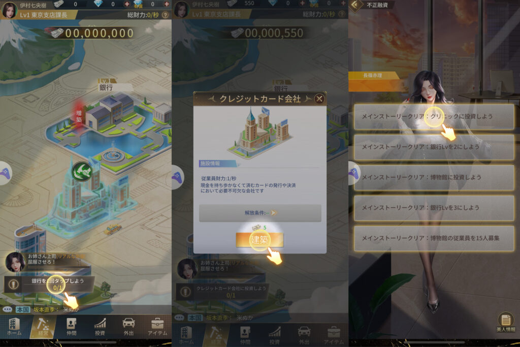 序盤は強力な秘書キャラクターを優先して採用・育成することで、経営効率が格段に上がります。