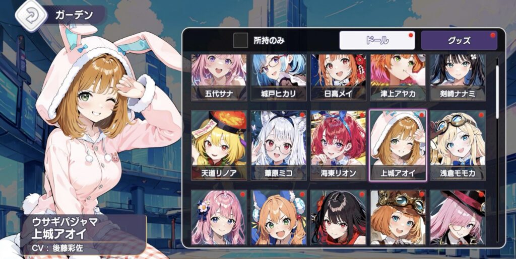 ガチャからはドール(★5/★4)やグッズが排出され、スキル・育成に直結します。